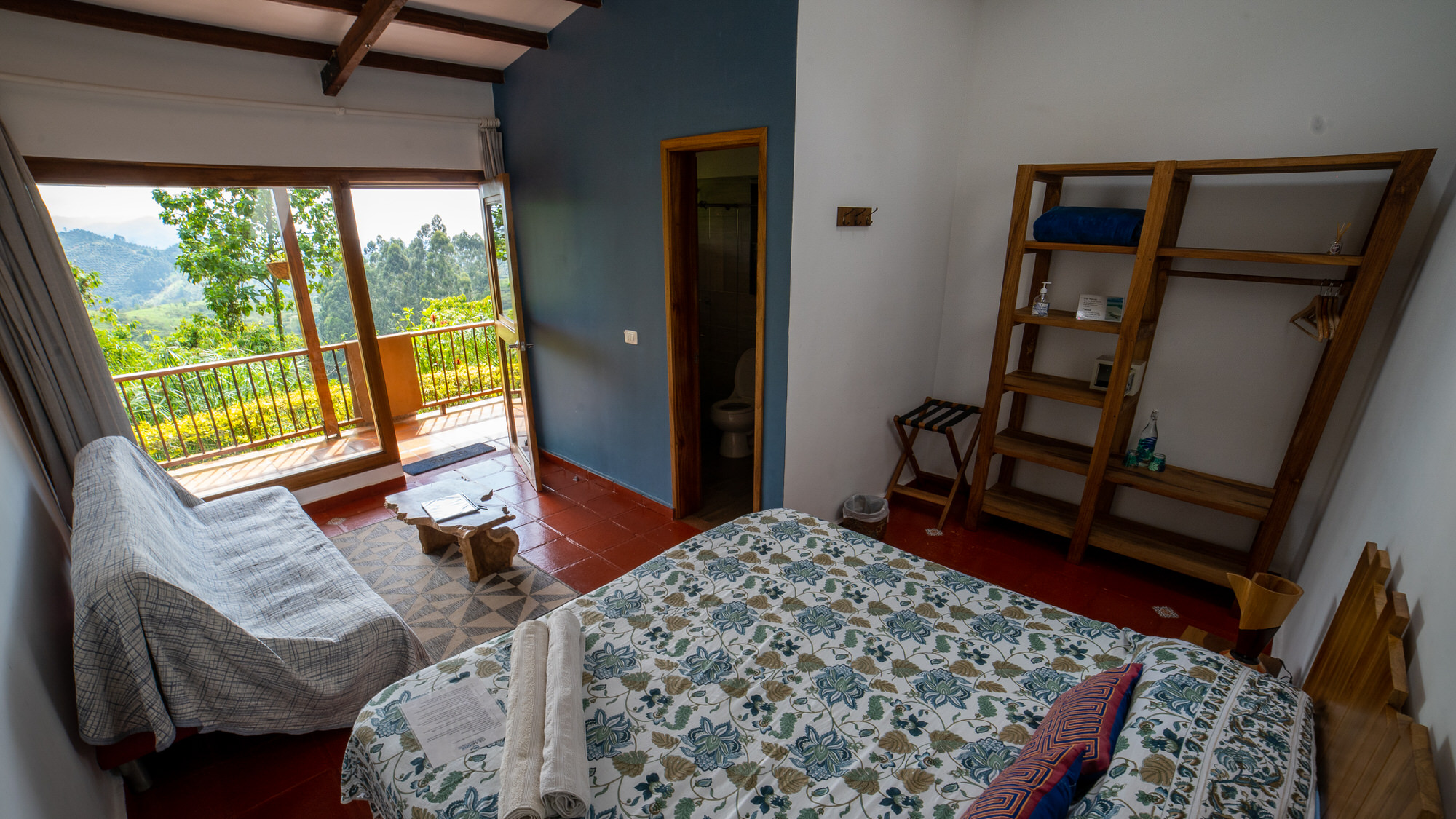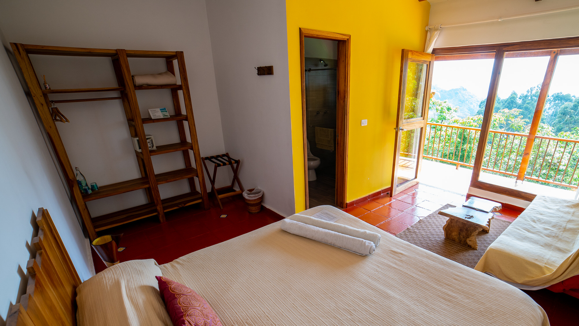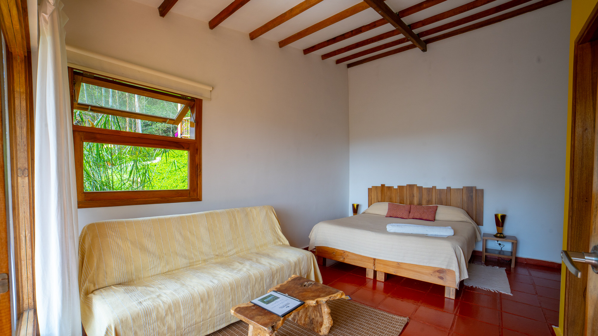 Las habitaciones están conectadas por un corredor, separadas del edificio principal por un jardín y escaleras, lo que crea un ambiente privado, tranquilo y rodeado de naturaleza. Cada una de nuestras habitaciones encarna la energía de un elemento —Tierra, Agua, Fuego, Aire y Éter— a través de su paleta de colores y su atmósfera única.